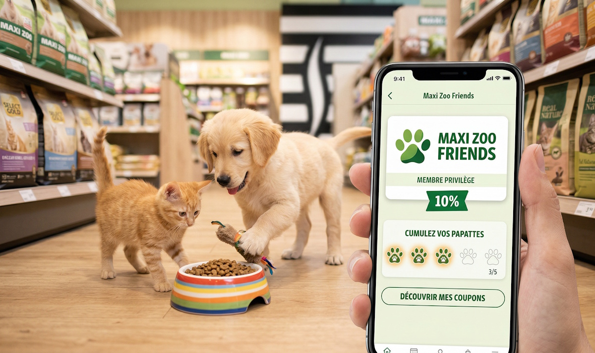 Le programme Maxi Zoo Friends a fait ses adieux à la carte en plastique. Il est désormais 100 % digital et accessible exclusivement via l’application mobile Maxi Zoo. Voici comment il récompense votre fidélité :